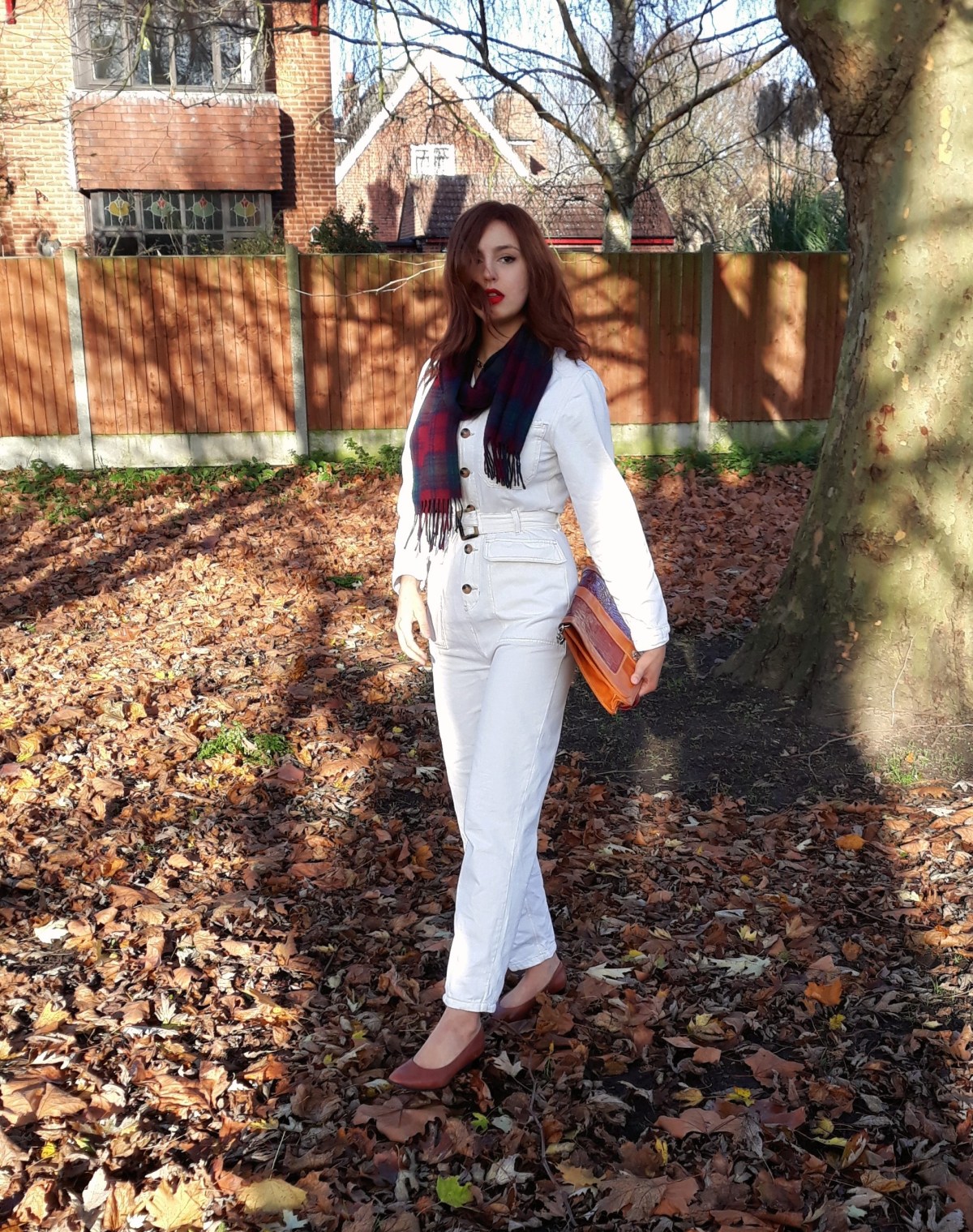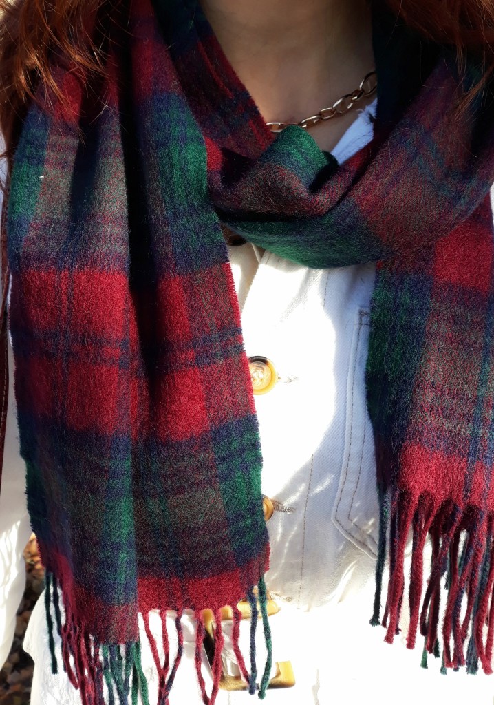 My outfit in this post cost just £18.75 (see full breakdown of costs below) and I was fully able to embrace that turning point in the year when we say a wistful, regretful goodbye to Autumn, while still simultaneously greeting the Christmas season. Of course, this look also embodies my loyalty to Scotch whisky (note the tartan scarf). The Autumn/Christmas crossover mood is, for me, very Douglas Sirk’s All That Heaven Allows (1955):